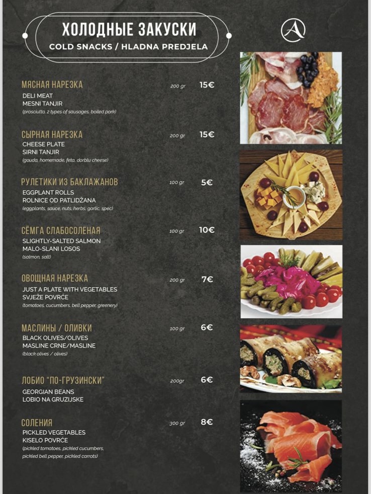 Alinka specializes in a delightful medley of Georgian and Eastern European cuisine. The café's menu is a treasure trove of options that cater to various tastes. Highlighting the seafood selection, the Pečena Dorada Sa Povrćem (Roasted Dorado with Vegetables) is not to be missed; at just €33, it's a flavorful journey with every bite. Equally tempting is the File Od Lososa Sa Sosom Od Pečurka (Salmon Fillet with Mushroom Sauce), balancing richness with the fresh essence of sea and earth. For those craving something heartier, the Kraljevske Kozice Na Žaru (Grilled Royal Shrimp) offers a pleasing snap, finished with a hint of soy sauce and garlic for just €18.